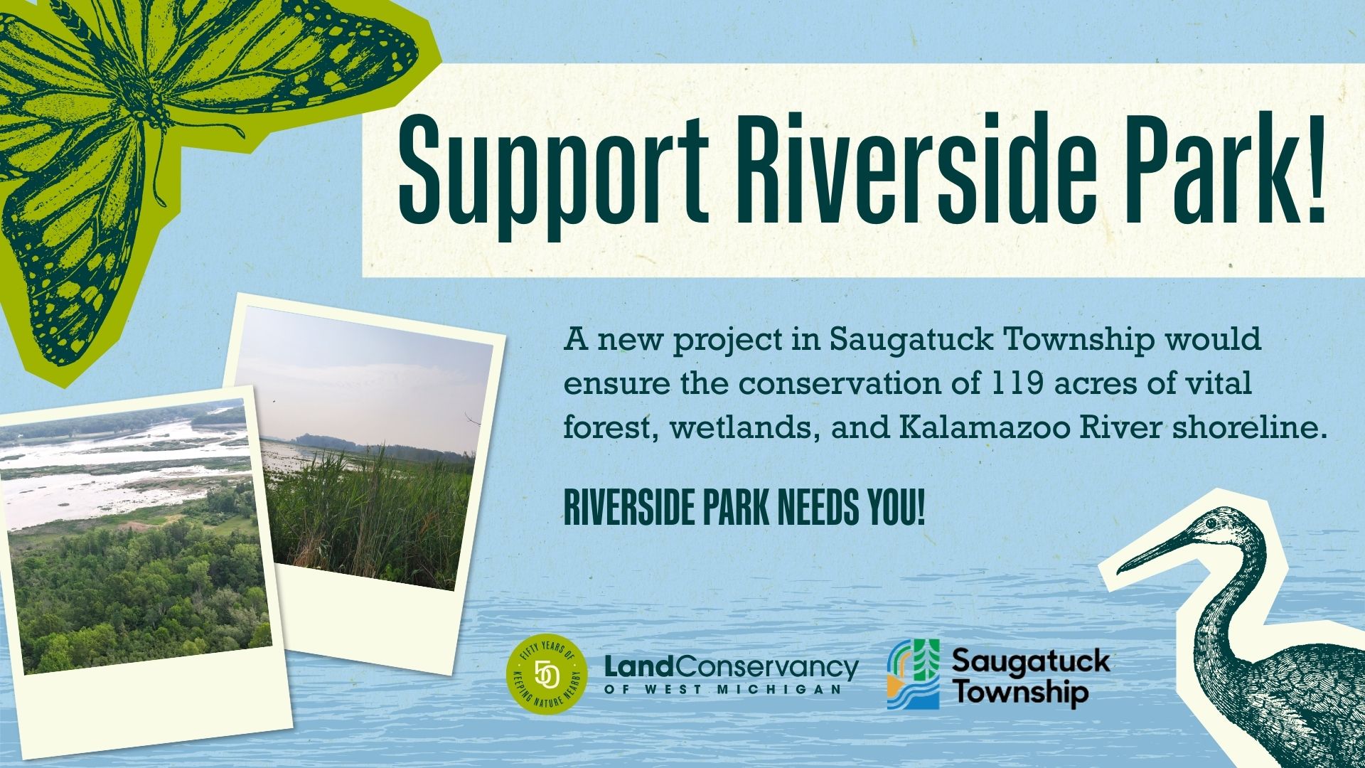 The family of a local resident committed to the stewardship of our natural lands has generously agreed to provide a match to increase the impact of donations to Riverside Park. The Land Conservancy of West Michigan seeks your help to raise $200,000 to cross the finish line and make Riverside Park a reality.
